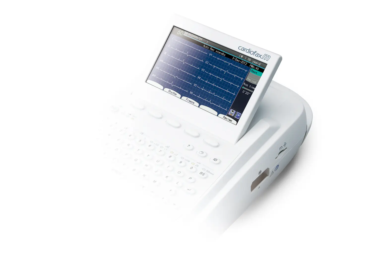 Kolay kullanımlı, ayarlanabilen renkli 7.0 inç LCD ekran ile 12 derivasyonlu EKG dalgaformu ve verileri eş zamanlı olarak görüntülenir. Hasta tanımlama ve dosyalama kolaylığı için alfanümerik klavye ile hasta bilgileri girilebilir. Barkod okuyucu ve manyetik kart okuyucu ile veri giriş hatalarının önüne geçilerek hızlı bir şekilde hasta bilgileri cihaza tanımlanabilir. 400 EKG dosyası dahili hafızada, yaklaşık 3.000 EKG dosyası SD kart hafızasında saklanabilir. SD hafıza kartı, USB Wi-Fi adaptör veya kablolu LAN bağlatısı kullanarak EKG verileri aktarılabilir. Tüm bu özellikleri ile Nihon Kohden EKG ailesi üst düzey hasta ve operatör konforu sunar.